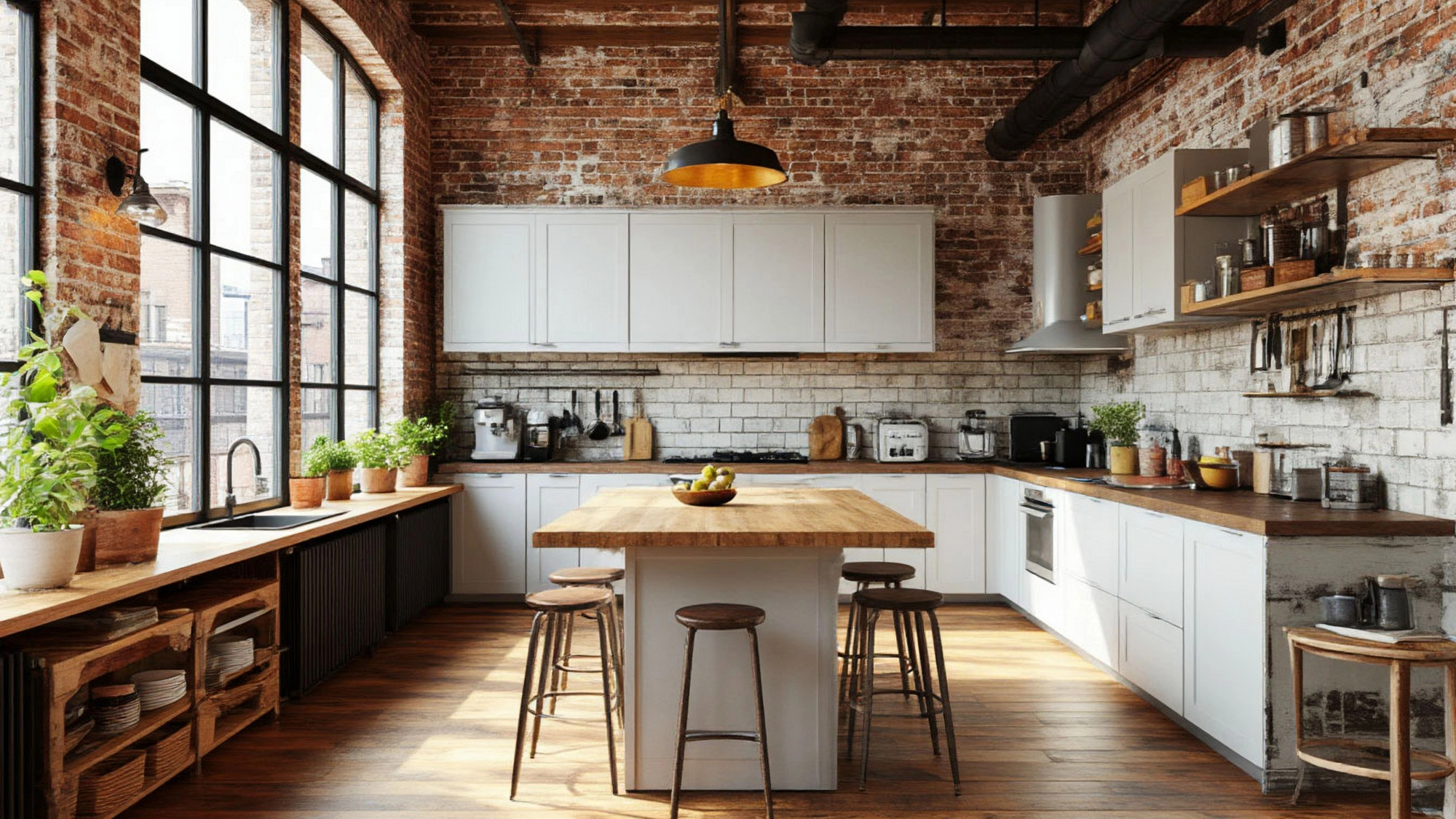 Фасады кухни выполнены в нежных светлых оттенках — от мягкого молочного до светло-бежевого, что создаёт впечатление лёгкости и свежести. Материалы тщательно подобраны для долговечности и практичности: высококачественный пластик и ламинированное дерево обеспечивают устойчивость к влаге, царапинам и механическим повреждениям, а их гладкая поверхность легко очищается. Светлые фасады гармонично контрастируют с элементами металла и стекла, которые традиционно используются в стиле лофт, создавая динамичную и визуально интересную композицию. Отсутствие лишних деталей и лаконичные линии делают интерьер воздушным и элегантным, подчеркивая минималистическую эстетику.