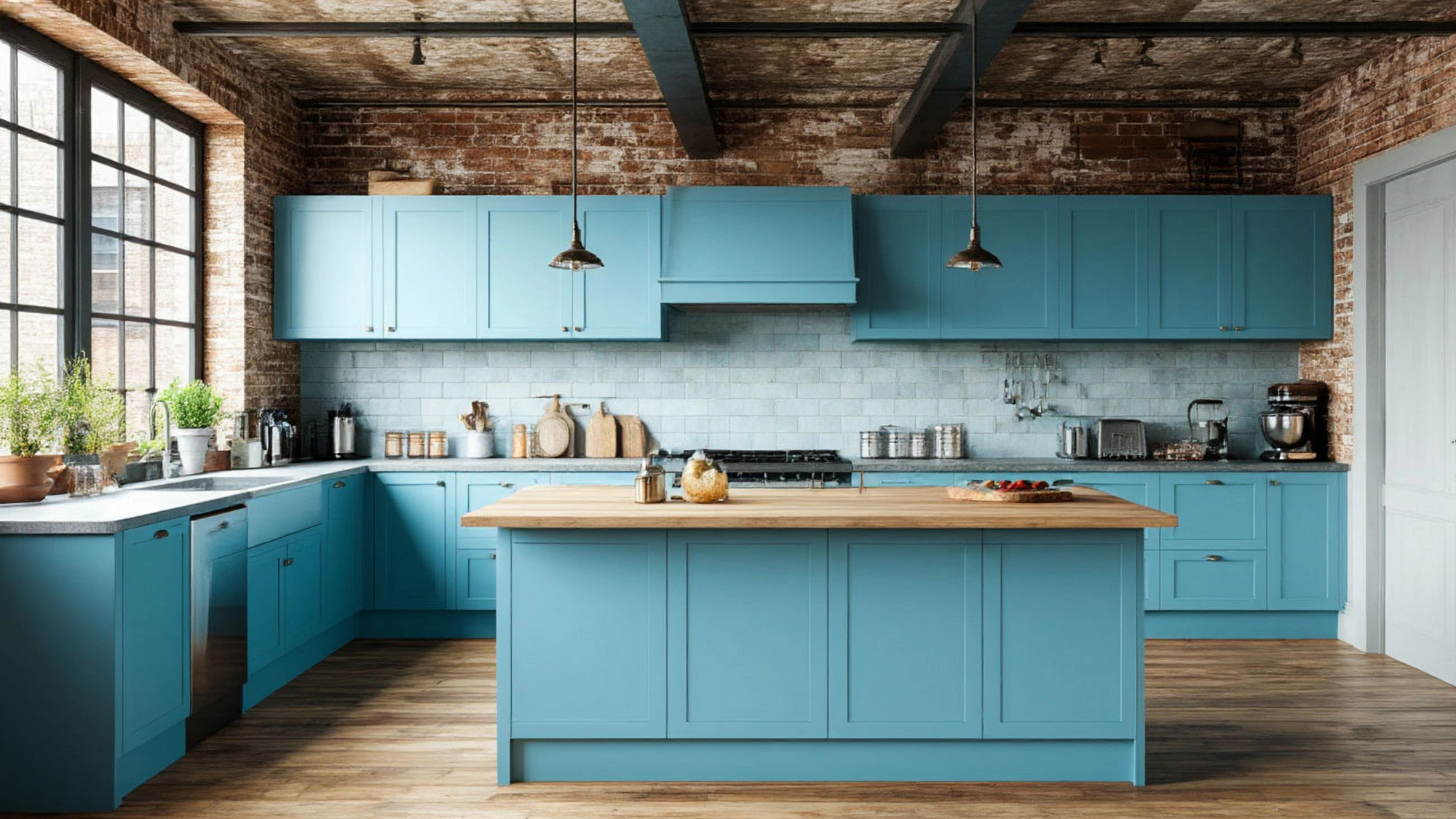 Голубой цвет здесь играет роль дыхания. Он наполняет интерьер воздухом, делает его визуально легче. В сочетании с металлическими акцентами, фактурой дерева или бетона он рождает тот самый лофтовый контраст, в котором встречаются природа и индустрия, прошлое и будущее. Этот цвет способен меняться под освещением — на солнце становится чуть теплее, в вечерних тенях обретает благородную глубину.