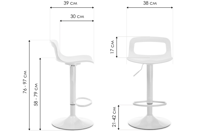 Высота спинки: 17 см. Высота подножки: 21 - 42 см.